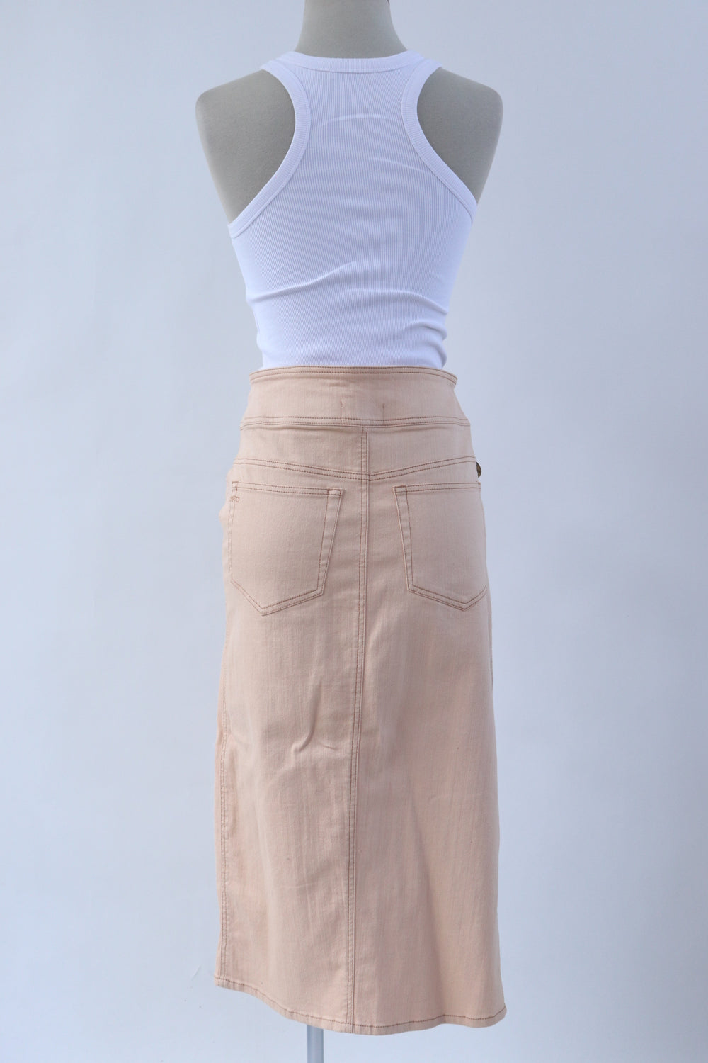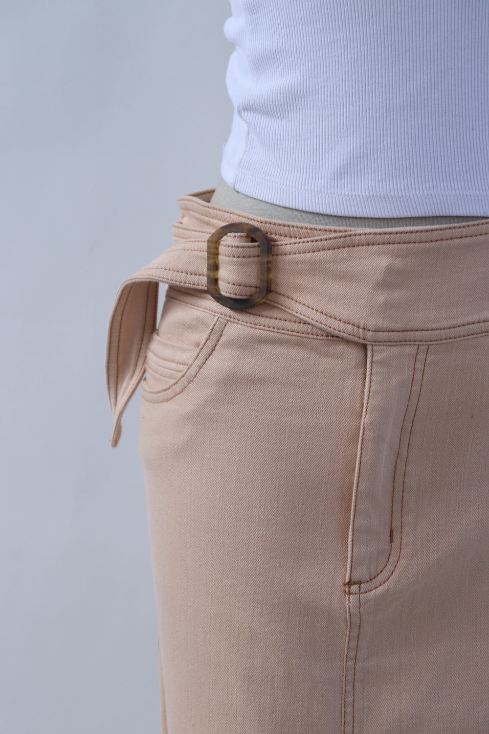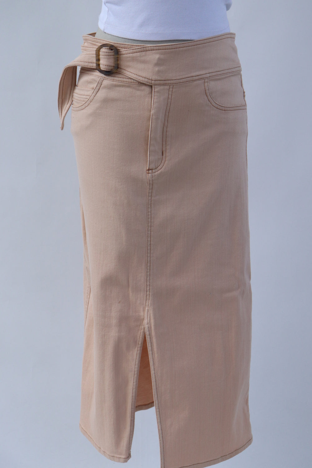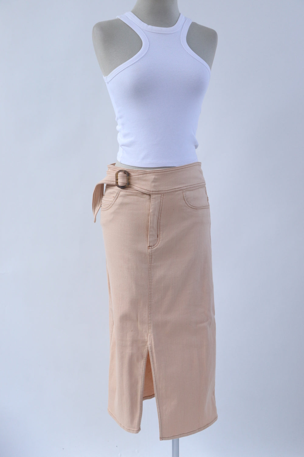 Falda tipo denim con cinturón en pretina color durazno