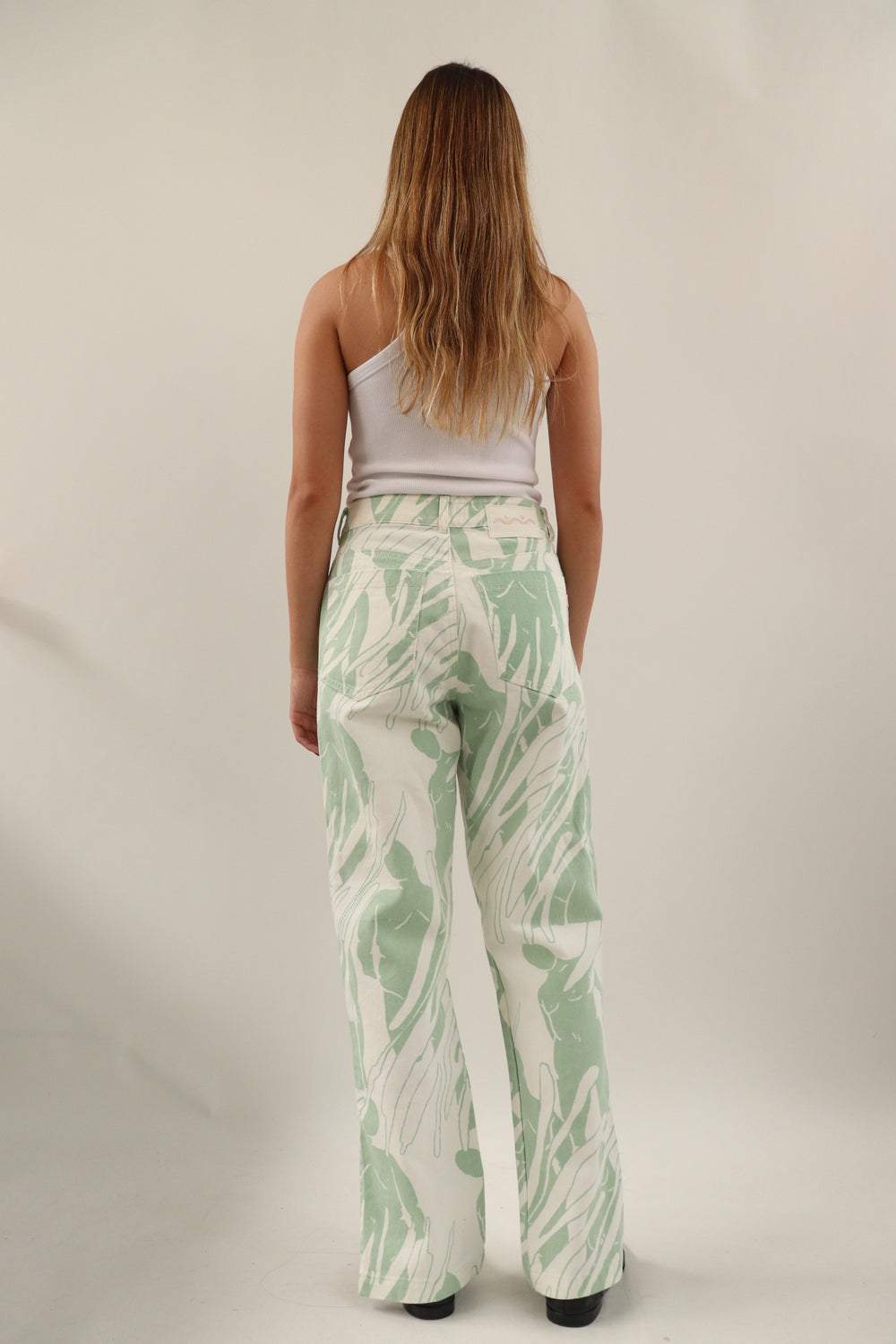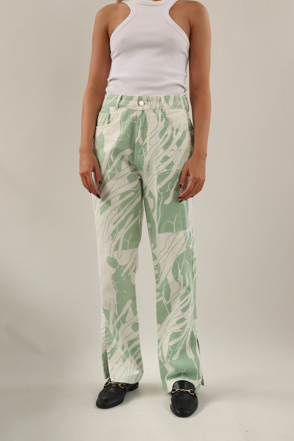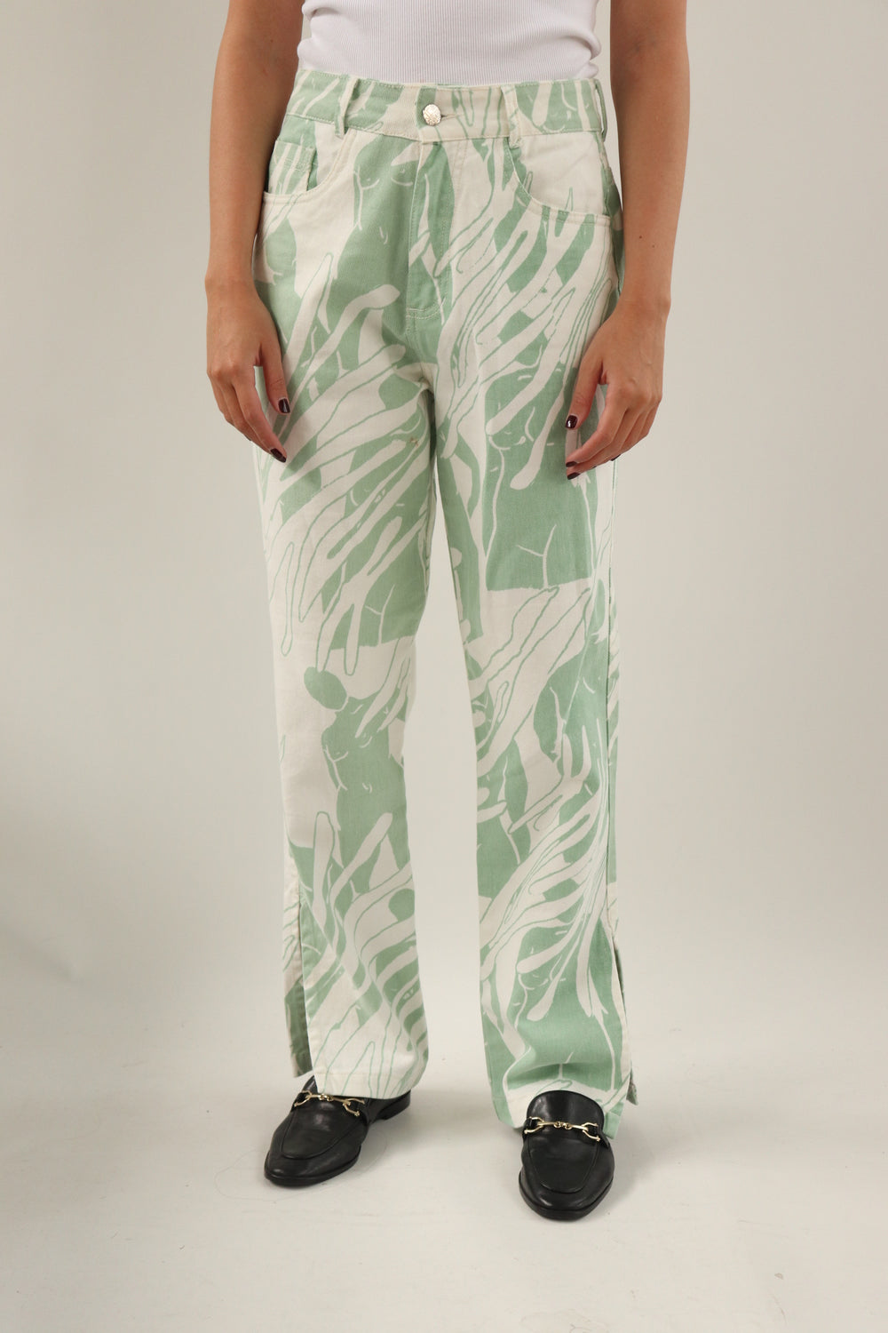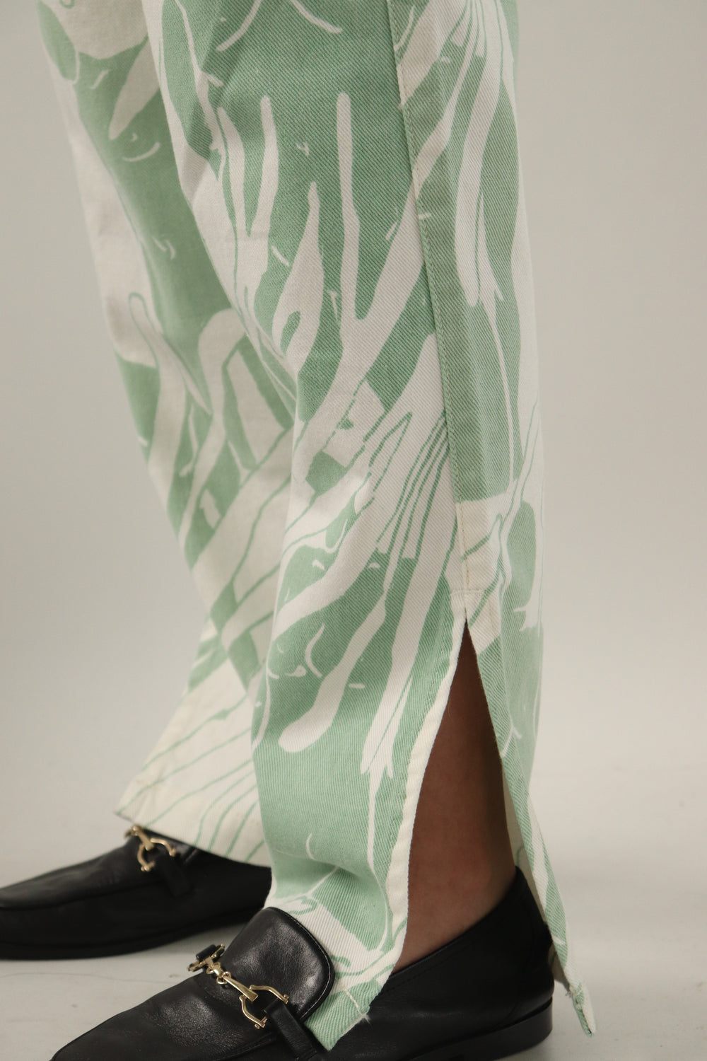 Pantalon con estampado verde y abertura en la parte de abajo