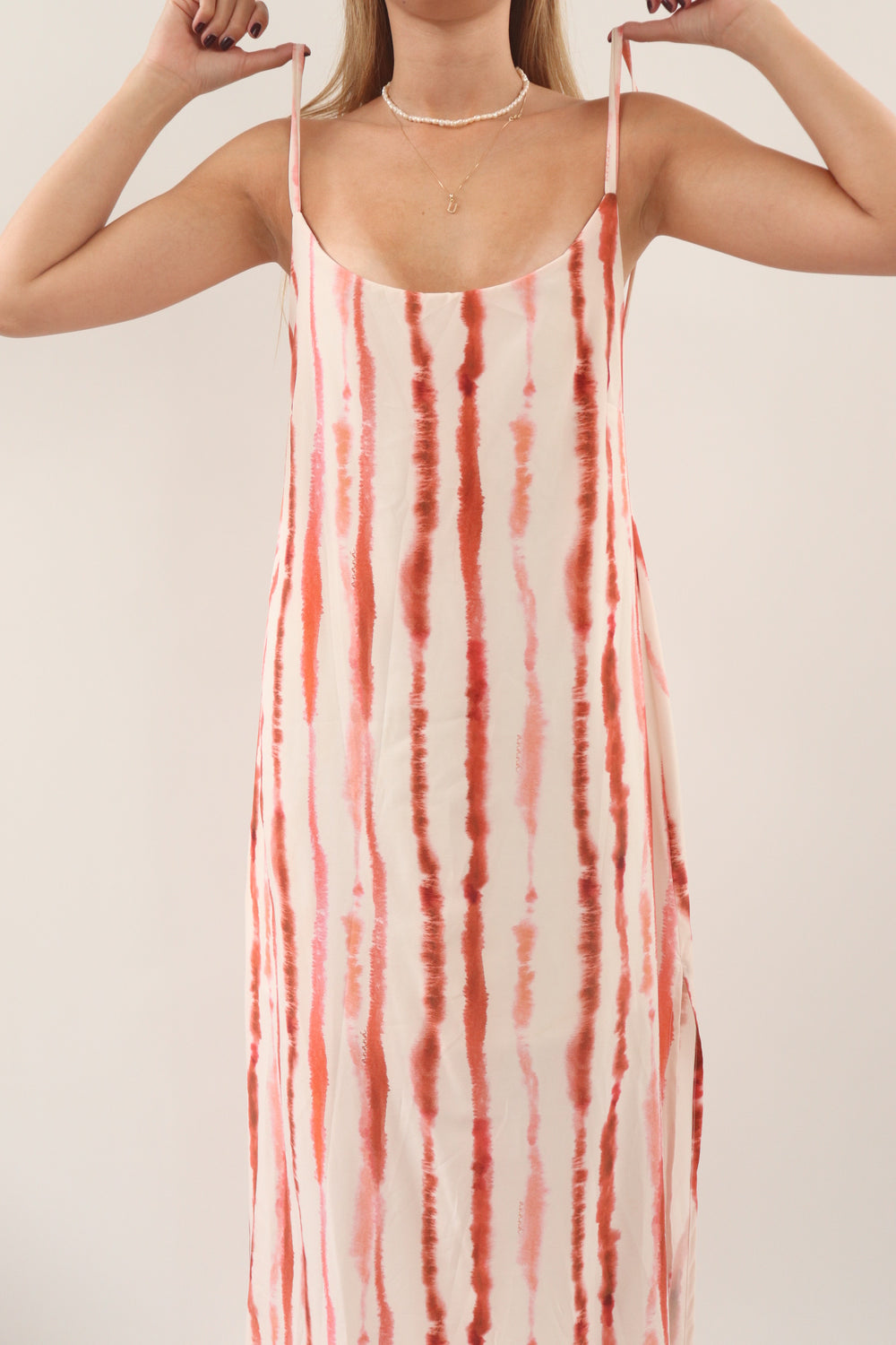 Vestido mangas tirantes en tela satinada